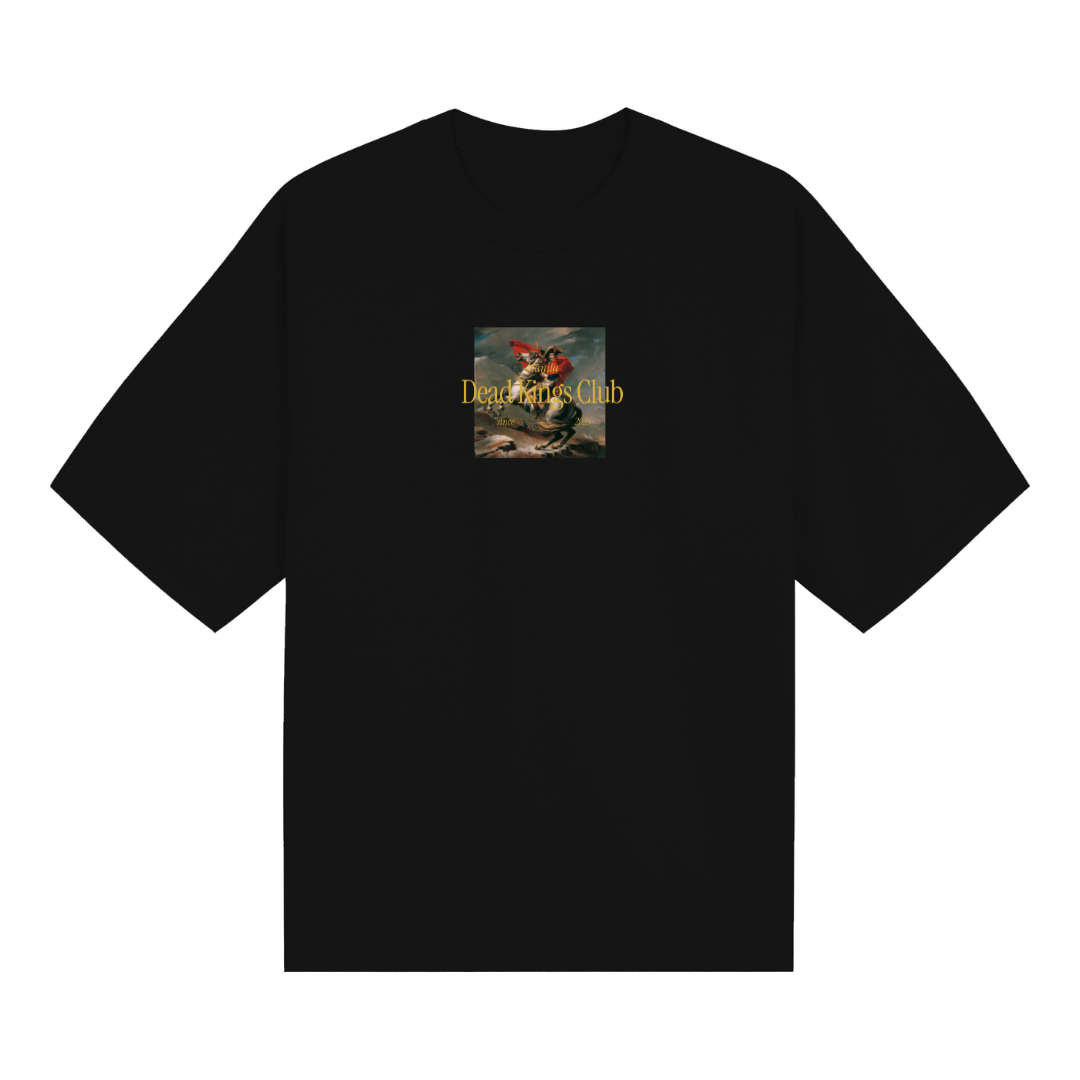 This Napoleon black t-shirt features a premium CVC cotton blend for a soft, breathable feel. Its oversized fit offers relaxed comfort and modern style, while the mock neck adds a subtle, refined touch. Ideal for layering or wearing solo, this versatile piece combines quality fabric with contemporary design for everyday wear.